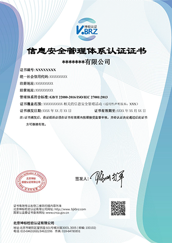 | 評價認證證書模板 | ISMS無標志證書模板 |