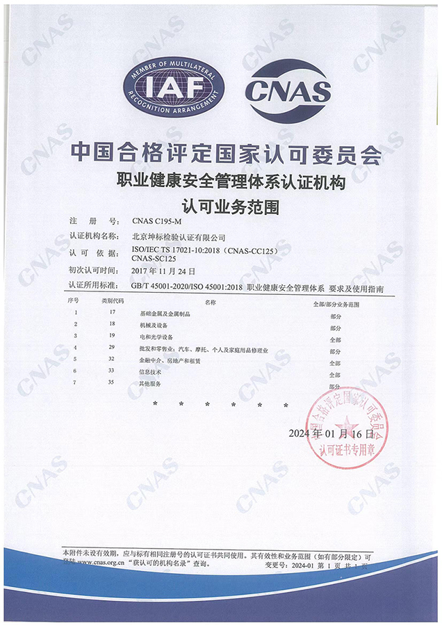 | 認證機構批準證書 | 認證機構批準證書附件 |